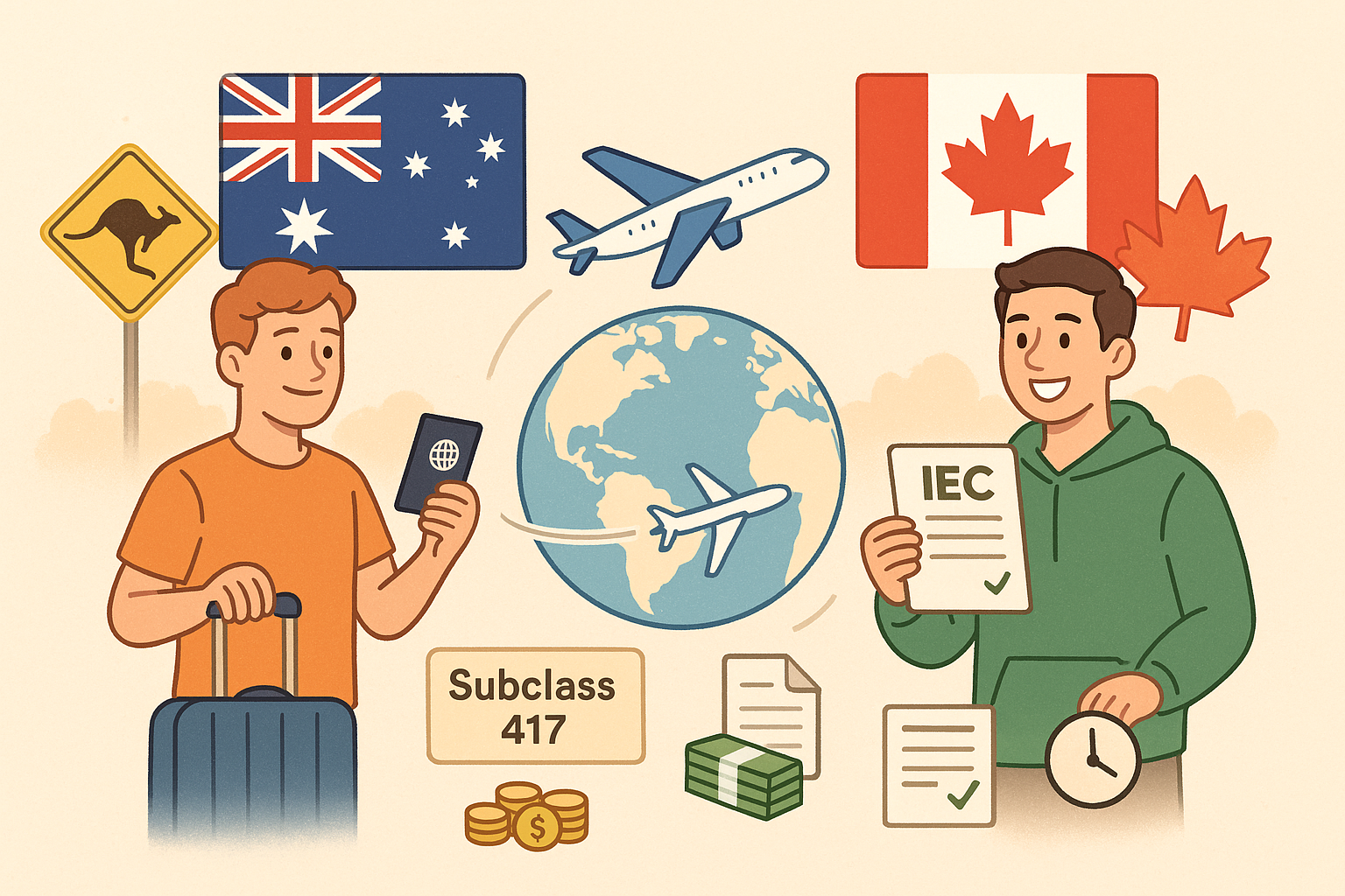 호주 워킹홀리데이(417)는 연장 기회와 다양한 아르바이트 경험이 장점이고, 캐나다 워킹홀리데이(IEC)는 장기 체류와 자유로운 취업 조건이 장점입니다. 두 제도 모두 해외취업 경험 + 언어 실력 향상 + 국제 교류라는 큰 기회를 제공합니다.