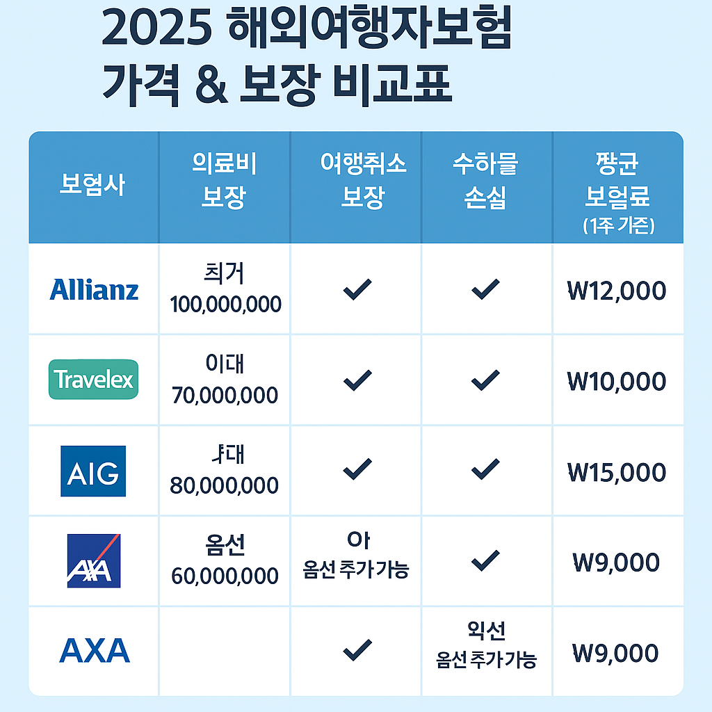 🌍 2025년 해외여행자보험 비교: 보장항목·가격·추천사