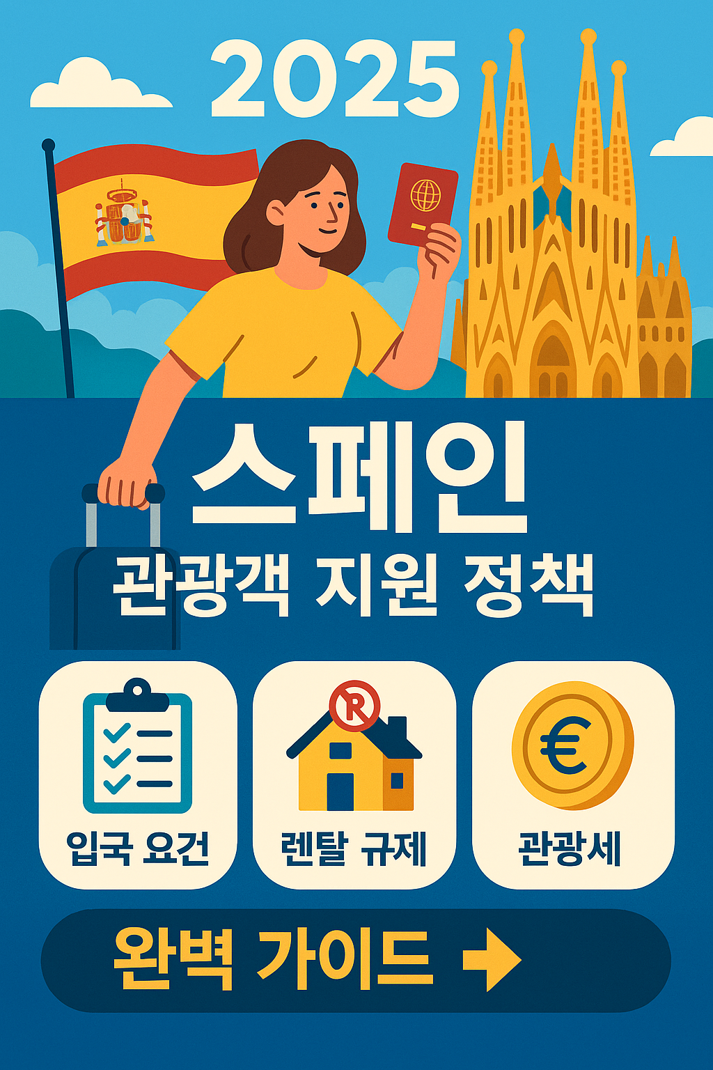 2025년 스페인 관광객 지원·규제 정책 최신 업데이트. 입국 요건, ETIAS, 단기 렌탈 규제, 관광세 변화 등 여행 전 반드시 알아야 할 핵심 정보를 한 번에 정리했습니다.