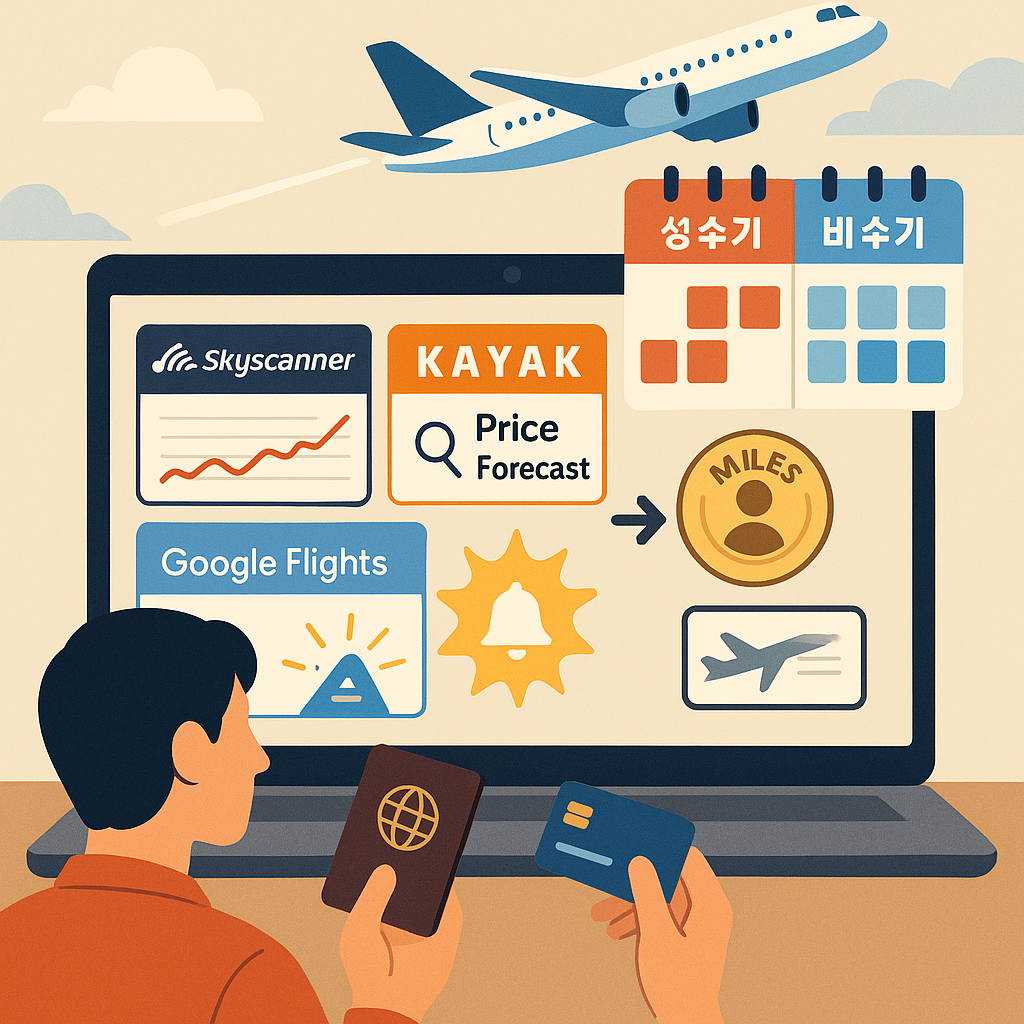 메타디스크립션: 2025년 9월 7일 기준 최신 팁! 성수기·비수기 예약 시기, 실시간 특가 항공권 사이트, 마일리지 & 카드 포인트 사용 전략까지 여행 전문가가 전하는 실전 노하우.