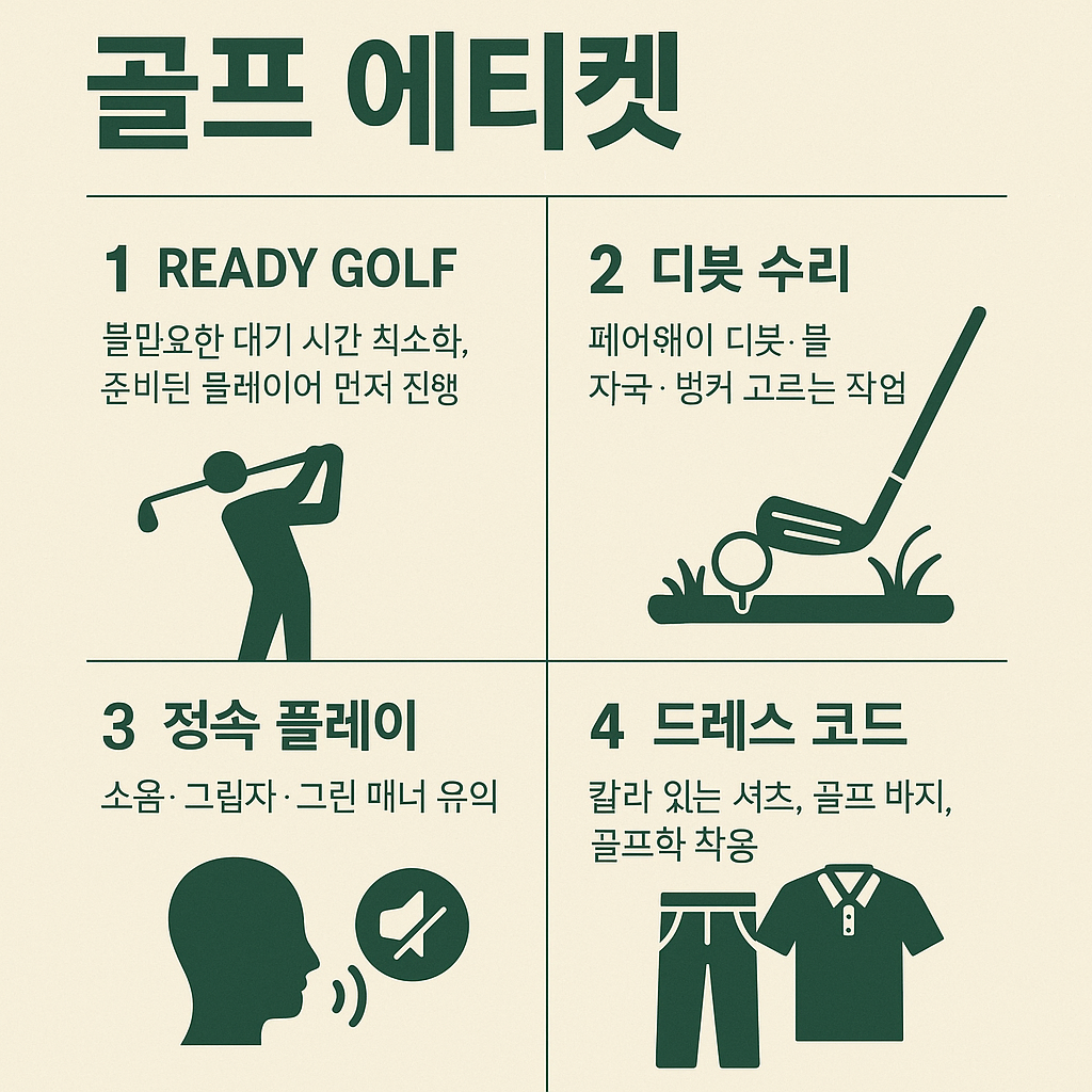 - 그린 위 소음·동선 최소화, Ready Golf 수칙