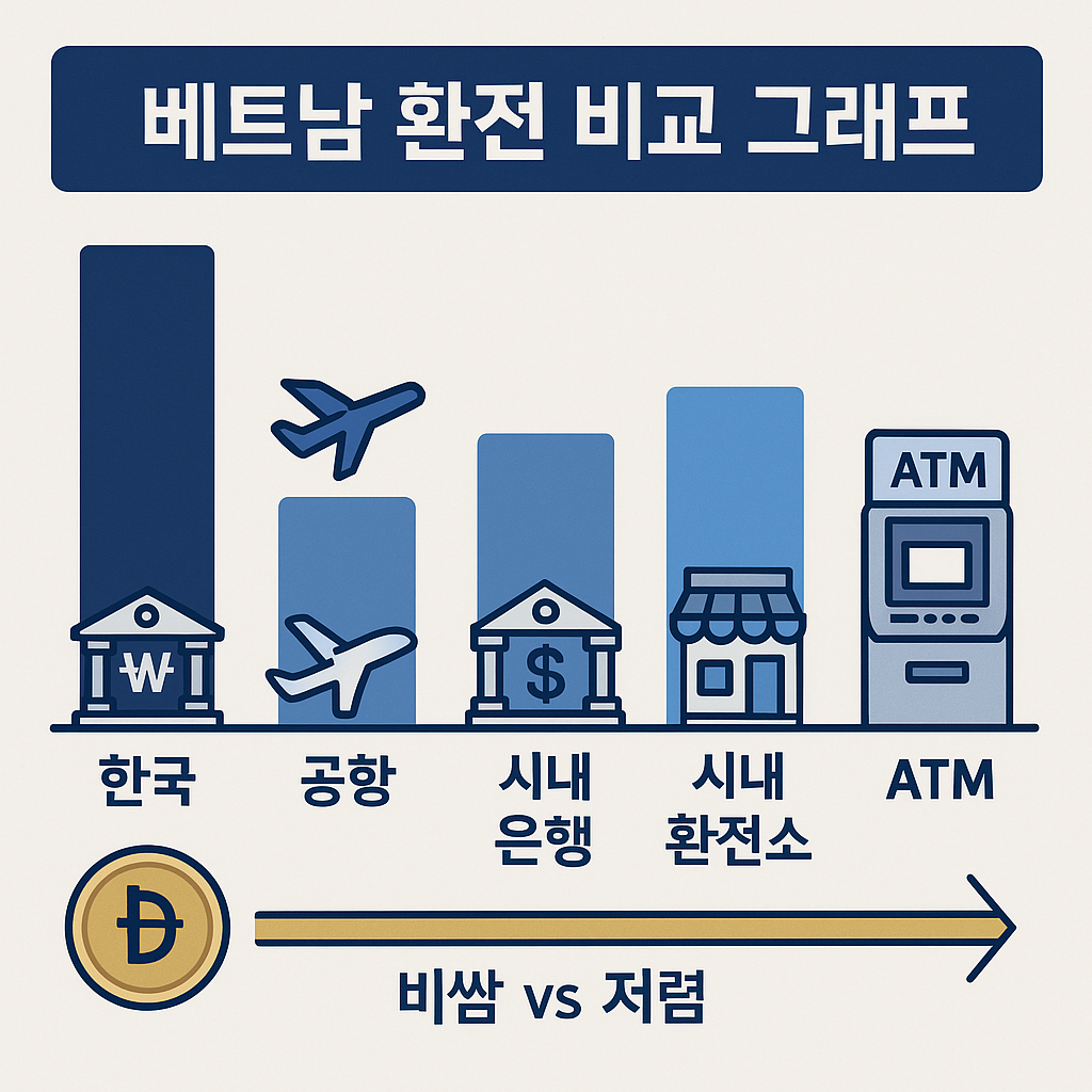 2025년 기준으로 보면 **한국에서 미리 VND로 환전하는 방법은 ‘안전하지만 비싸다’**는 평가가 많습니다. 한국 은행 환전은 고정 수수료 + 불리한 스프레드가 포함되어 있어, 대부분의 여행자는 “필요한 최소 금액만 환전”하고 나머지는 현지에서 해결하는 방식을 택합니다.