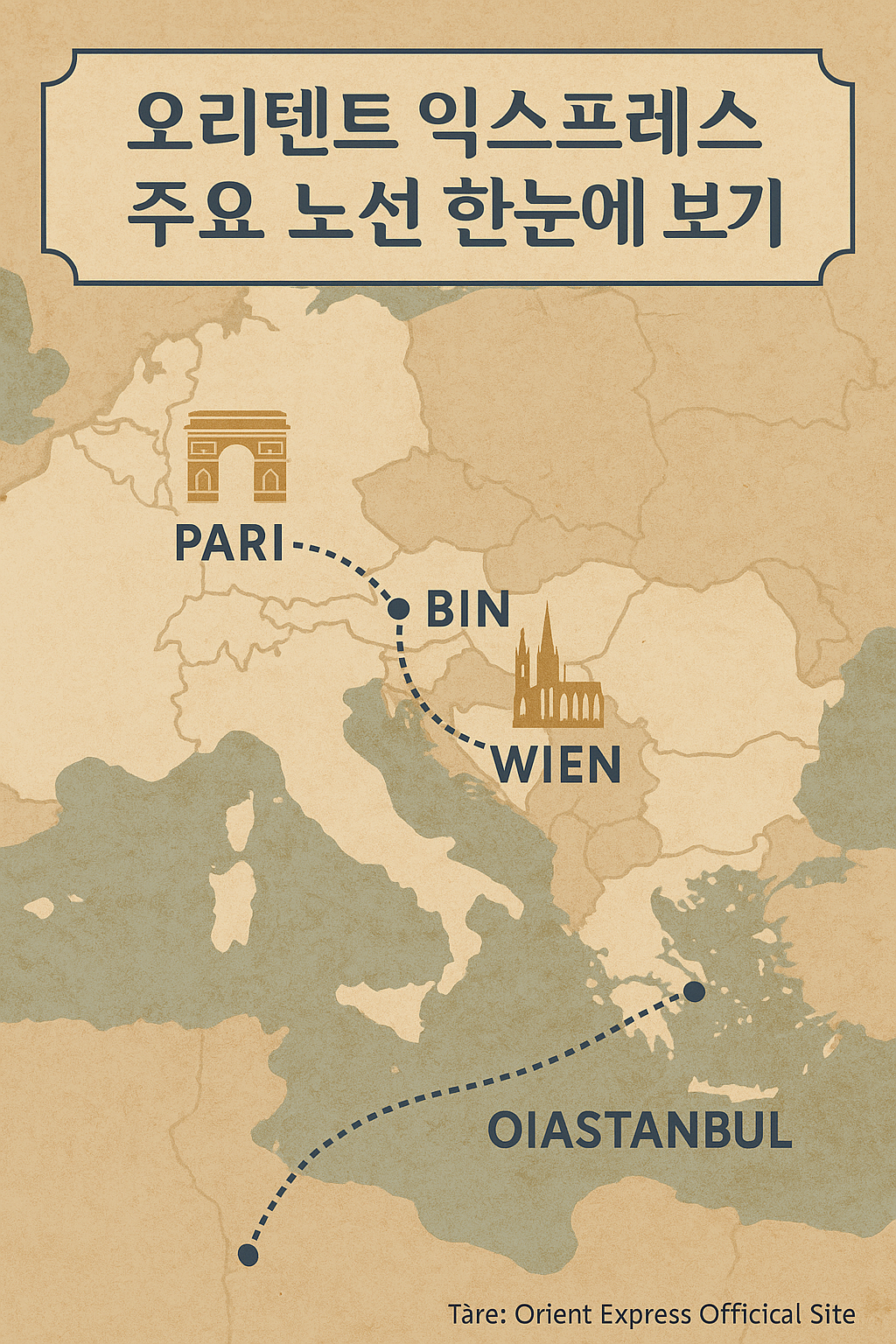 유럽 럭셔리 기차여행의 정점, 오리엔트 익스프레스 3박 4일 전 구간 탑승 후기를 중심으로 일정·가격·객실 등급·포함 서비스·예약 방법까지 모두 정리했습니다. 2025년 기준 벨몬드 오리엔트 익스프레스의 노선 정보와 새롭게 주목받는 라 돌체 비타(Orient Express La Dolce Vita) 기차까지 함께 살펴봅니다.
