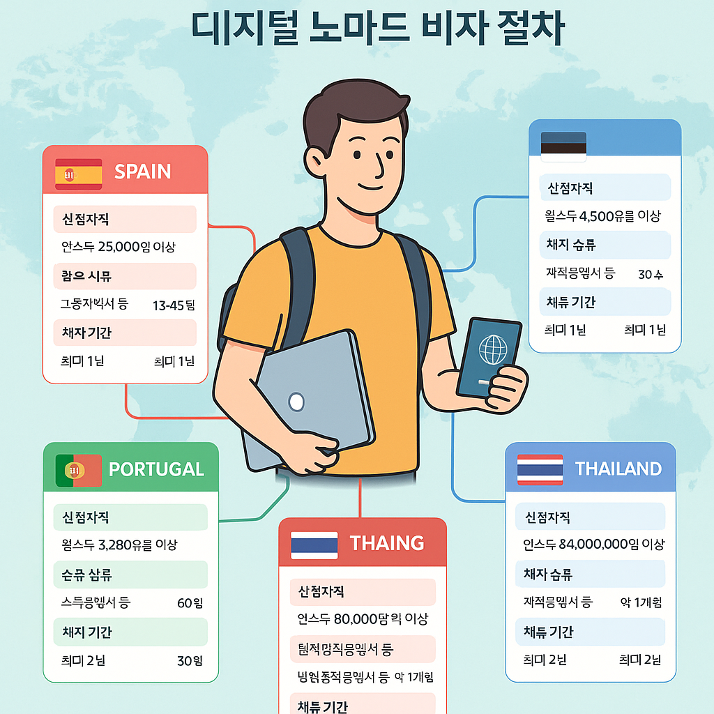 국가별 디지털 노마드 비자 취득 절차 & 소득세 규정 (태국·포르투갈·발리·한국 포함) 2025 최신 가이드 · 전문가 팁 포함 본 글은 정보 제공 목적이며 세무·이민 법률 자문이 아닙니다. 실제 신청 전 현지 대사관·세무 전문가와 최신 공지를 반드시 확인하세요. 디지털 노마드 비자 & 세금 기본 개념 태국 포르투갈 인도네시아/발리 한국 비교 요약 표 & 체크리스트 FAQ 참고문헌/출처 한눈에 보는 전 세계 디지털 노마드 비자 절차 디지털 노마드 비자 & 세금 기본 개념 디지털 노마드 비자는 외국에서 합법적으로 원격근무(고용·프리랜스)를 허용하는 체류 자격입니다. 대부분 국가는 거주자 vs 비거주자를 체류일수(보통 183/180일 규칙) 등으로 판단하고, 거주자가 되면 전세계 소득 과세가 적용될 수 있습니다. 또한 본국과 체류국 간 이중과세 방지 협약(DTA) 여부가 실제 세부담에 큰 영향을 줍니다. 태국 (Thailand) 비자 취득 절차 & 조건 대표 옵션은 DTV(Destination Thailand Visa) 및 LTR(Long-Term Resident)입니다. 만 20세 이상 유효여권, 원격근무 증빙(외국 고용계약/프리랜스 포트폴리오), 범죄경력증명, 금융요건(예: 최소 예치금) 등이 요구될 수 있습니다. DTV는 장기 체류를 유연하게 허용하고, LTR은 최대 10년 체류와 일부 세제 혜택이 특징입니다. 소득세 규정 & 유의점 거주자 판단: 통상 연 180일 이상 체류 시 거주자 간주. 외국소득 송금 과세: 같은 과세연도 태국으로 송금한 해외 소득은 과세될 수 있음. 세율: 구간별 0~35% 누진. 태국 내 발생 소득은 원칙적으로 과세. 팁: 현지 클라이언트 없이 외국 원천소득만 있고, 체류일수를 관리하면 과세 리스크를 낮출 수 있습니다. 포르투갈 (Portugal) 비자 취득 절차 & 조건 원격근무자를 위한 D8(Temporary Stay for Remote Work)가 대표적입니다. 월 소득 기준 충족, 거주지·보험·범죄기록 증빙이 필요하며 해외 주재 포르투갈 대사관/VFS를 통해 접수합니다. 최초 1년 체류 후 연장 가능성이 있습니다. 소득세 규정 & 유의점 183일 규칙: 183일 이하 체류 시 비거주로 분류되어 해외 소득 과세가 배제될 수 있음. NHR 제도: 최근 개정으로 적용 범위가 축소되었으니 최신 공지 확인 필수. 일반 세율: 구간별 누진(대략 14.5%~48%). 팁: NIF 발급, 은행계좌·임대계약 선확보가 심사 가속에 유리합니다. 인도네시아 / 발리 (Bali) 비자 취득 절차 & 조건 Remote Worker Visa(E33G)가 도입되며 공식적으로 원격근무 체류가 가능해졌습니다. 외국 고용주/고객에 대한 소득 증빙, 보험, 무범죄 기록 등이 필요하며 최소 연소득 요건(예: USD 60,000)이 공지되는 경우가 많습니다. 초기 1년 체류 후 연장 옵션을 검토하세요. 소득세 규정 & 유의점 거주자 판단: 12개월 내 183일 체류 시 거주자 전환. 과세 원칙: 거주자 전환 시 전세계 소득 과세 가능성. 현지 소득(인도네시아 원천)은 원칙 과세. 팁: 관광·종교·정찰 지역의 드론·촬영 규정, 공동작업공간 비자 요건(사업행위 간주 여부)도 사전 확인하세요. 한국 (South Korea) 비자 절차 & 조건 F-1D 워케이션 비자로 외국인 원격근무자의 임시 체류를 허용합니다. 한국 GNI 대비 2배 이상의 연소득, 원격근무 경력(통상 1년 이상), 보험·무범죄 기록 등이 요구되며, 해외 한국 대사관을 통해 신청합니다. 1년 체류 허가 후 1회 연장(최대 2년) 가능이 일반적입니다. 소득세 규정 & 유의점 거주자 판단: 통상 183일 이상 체류 시 거주자 간주, 전세계 소득 과세 가능. 국내원천 소득: 한국 내에서 발생한 소득은 과세 대상. 외국소득의 과세 여부는 체류 형태·송금·협약에 따라 달라질 수 있음. 세율: 구간별 6%~42% 누진 + 지방소득세. 팁: 한국 내 고객을 직접 상대하면 사업장 간주·원천징수 이슈가 생길 수 있어 계약 구조를 명확히 하세요. 한눈에 보는 전 세계 디지털 노마드 비자 절차 비교 요약 표 & 체크리스트 국가 비자/기간 핵심 요건 거주자 판단 해외소득 과세 주의 포인트 태국 DTV, LTR / 장기 원격근무 증빙, 범죄경력, 금융요건 ~180일 동일 과세연도 송금 시 과세 가능 송금 타이밍·현지 소득 발생 주의 포르투갈 D8 / 1년+연장 월 소득 기준, 보험·거주지 183일 규칙 NHR 적용/협약에 따라 달라짐 NHR 최신 공지 확인 필수 인도네시아(발리) E33G / 1년+연장 외국 고용/고객 소득, 보험 183일 규칙 거주자 전환 시 전세계 과세 가능 업무행위 간주 여부·체류일수 관리 한국 F-1D / 1년+1년 GNI×2 소득, 경력, 보험 183일 규칙 국내원천 과세, 해외소득은 케이스별 원천징수·사업장 간주 리스크 체크리스트 ✅ 여권 유효기간(6개월+)·범죄경력·보험·소득증빙 준비 체류일수(183/180일) 캘린더로 관리, 국경 이동 계획 포함 본국-체류국 DTA(이중과세 방지 협약) 확인 해외소득 송금 시점·방식 기록(리밋턴스 기준 국가 대비) 현지 고객(원천) 소득 발생 시 세무·사업자 규정 확인 FAQ 디지털 노마드 비자만 있으면 세금 문제도 자동 해결인가요? 아닙니다. 비자와 과세는 별개입니다. 거주자 판정·협약·송금 기준에 따라 과세 결과가 달라집니다. 183일을 넘기면 반드시 전세계 소득 과세인가요? 대부분 예, 다만 비자 유형·국가별 예외 및 협약에 따라 달라질 수 있어 최신 법령 확인이 필요합니다. 본국에 이미 세금을 냈